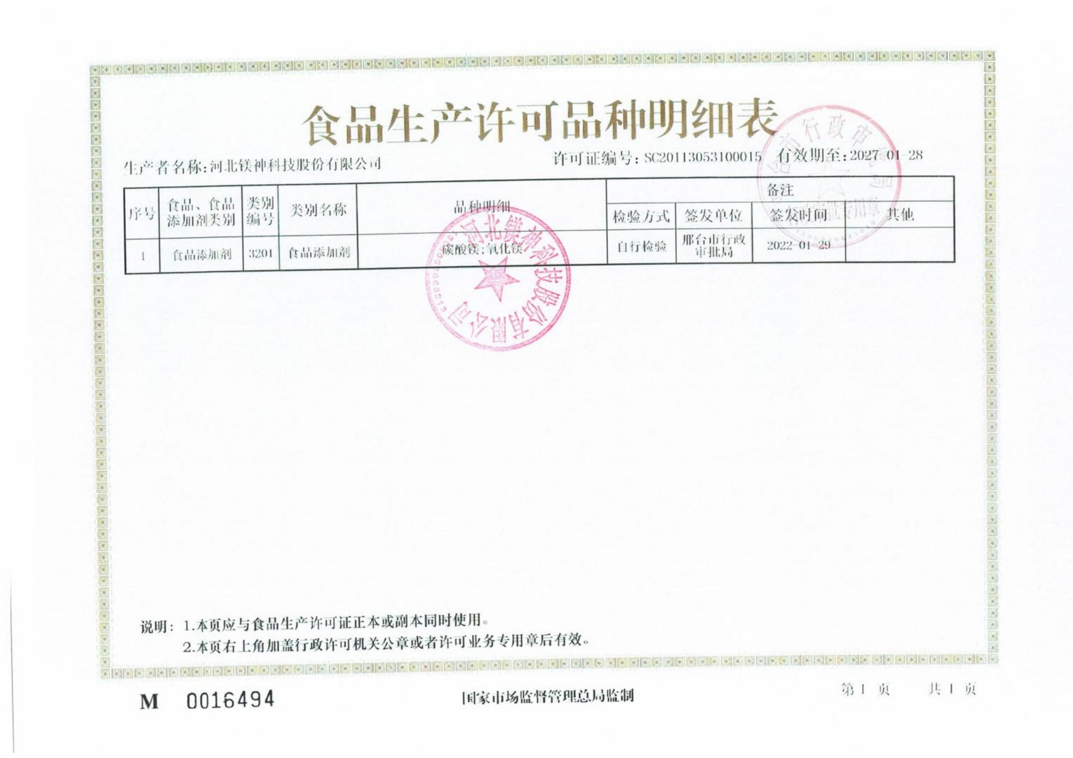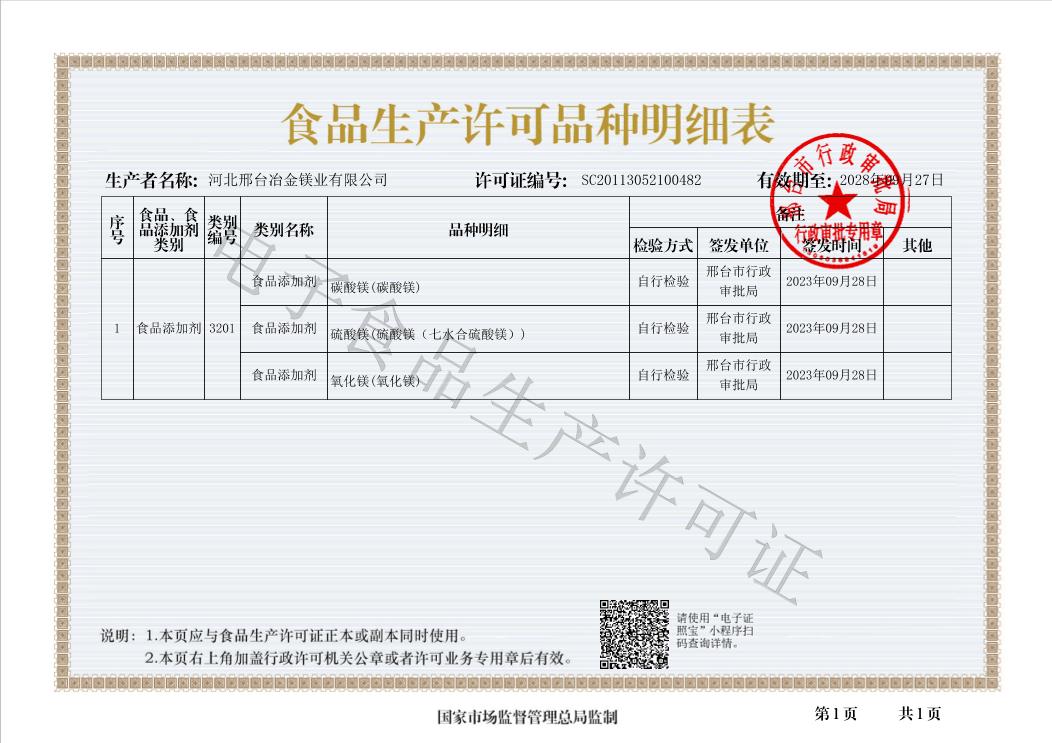 鎂神食品生產(chǎn)許可證明細(xì)