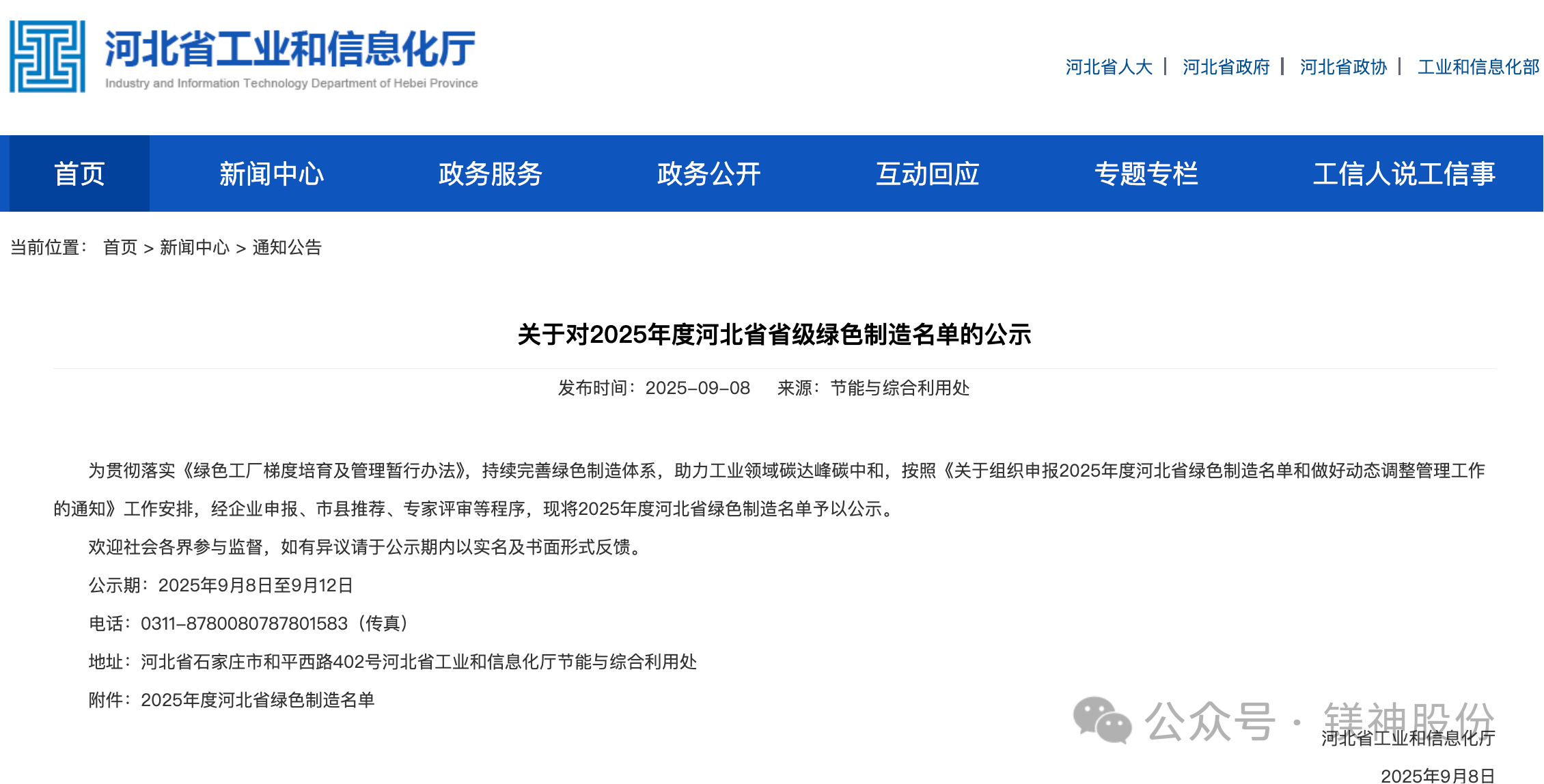 喜報!鎂神科技入選2025年度河北省綠色制造名單