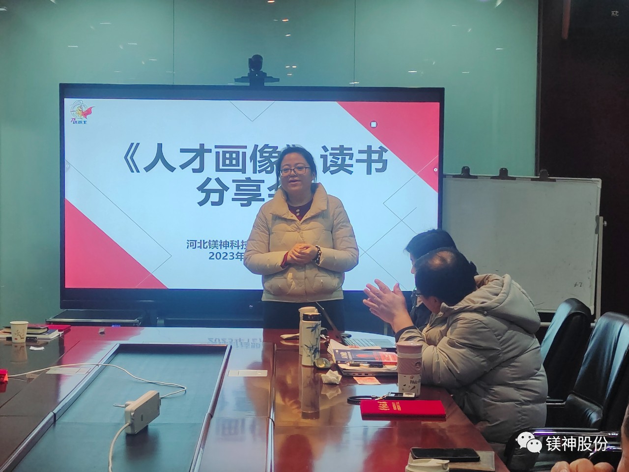 2023年12月30日,為打造學習型組織,提升組織學習能力,河北鎂神科技股份有限公司在二樓會議室舉辦了一場別開生面的《人才畫像》讀書分享會。公司孫總、部長級以上人員等共聚一堂,共同分享了對這本書的學習心得,以及如何運用書中的知識到實際的招聘和人才培養中。