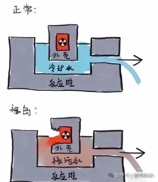 核污水≠核廢水,體現在來源及含輻射物質上的不同。