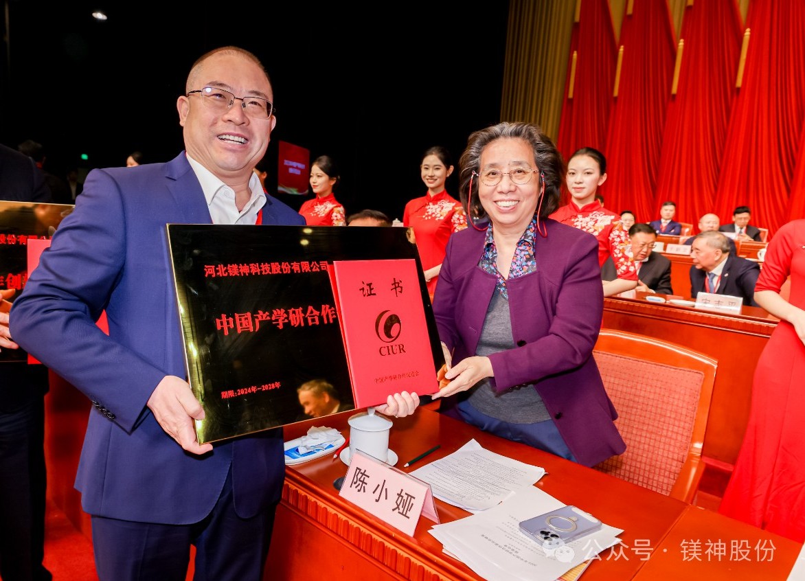 3月17日,以“產(chǎn)學(xué)研聚焦:新動(dòng)能、新模式、新產(chǎn)業(yè)”為主題的第十五屆中國(guó)產(chǎn)學(xué)研合作創(chuàng)新大會(huì)在北京會(huì)議中心隆重召開(kāi),河北鎂神科技股份有限公司董事長(zhǎng)孫文受邀出席。會(huì)議表彰了2023年在產(chǎn)學(xué)研深度融合方面做出貢獻(xiàn)的先進(jìn)單位和個(gè)人,河北鎂神科技股份有限公司榮獲“中國(guó)產(chǎn)學(xué)研合作創(chuàng)新示范企業(yè)”,中國(guó)產(chǎn)學(xué)研合作促進(jìn)會(huì)特聘專(zhuān)家、科技部原副部長(zhǎng)陳小婭為我司頒發(fā)榮譽(yù)證書(shū)。