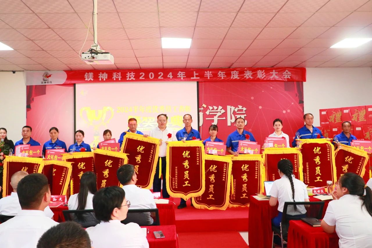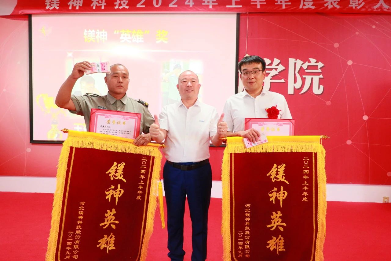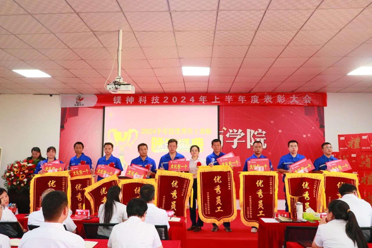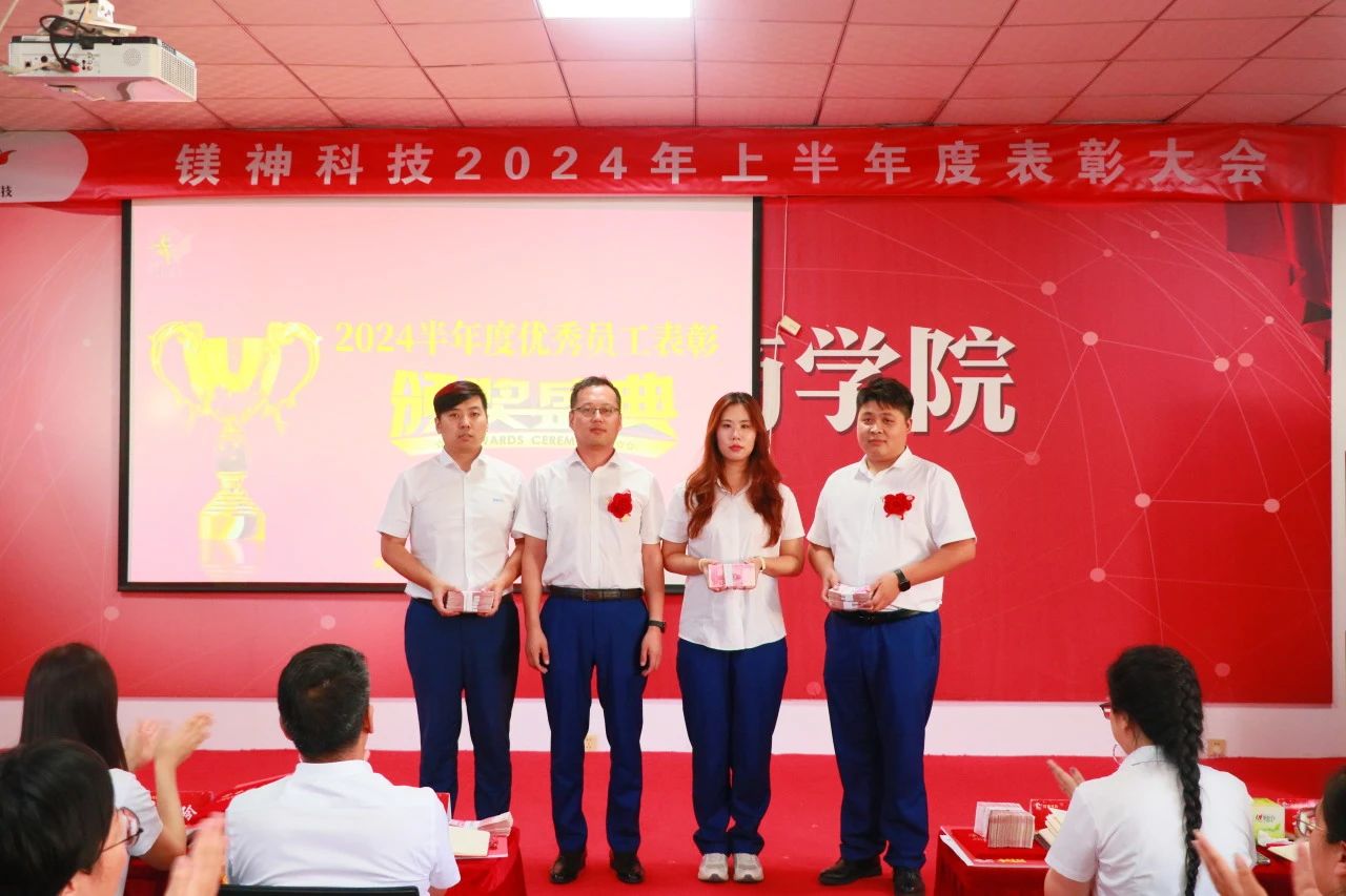 2024年9月18日,在這碩果累累的季節,河北鎂神科技股份有限公司舉辦了一場隆重的半年度表彰大會。本次大會不僅總結了公司上半年度的輝煌成就,還對表現突出的員工和團隊進行了慷慨的獎勵。此次表彰大會的獎金總額高達175.98萬元,其中包括:優秀表彰共44.9萬元,鎂神英雄獎1萬元,優秀團隊及特殊貢獻獎共計83萬元,2023年外貿提成及市場獎勵47.08萬元。這些豐厚的獎勵不僅是對優秀員工的肯定,更是對未來拼搏的激勵。