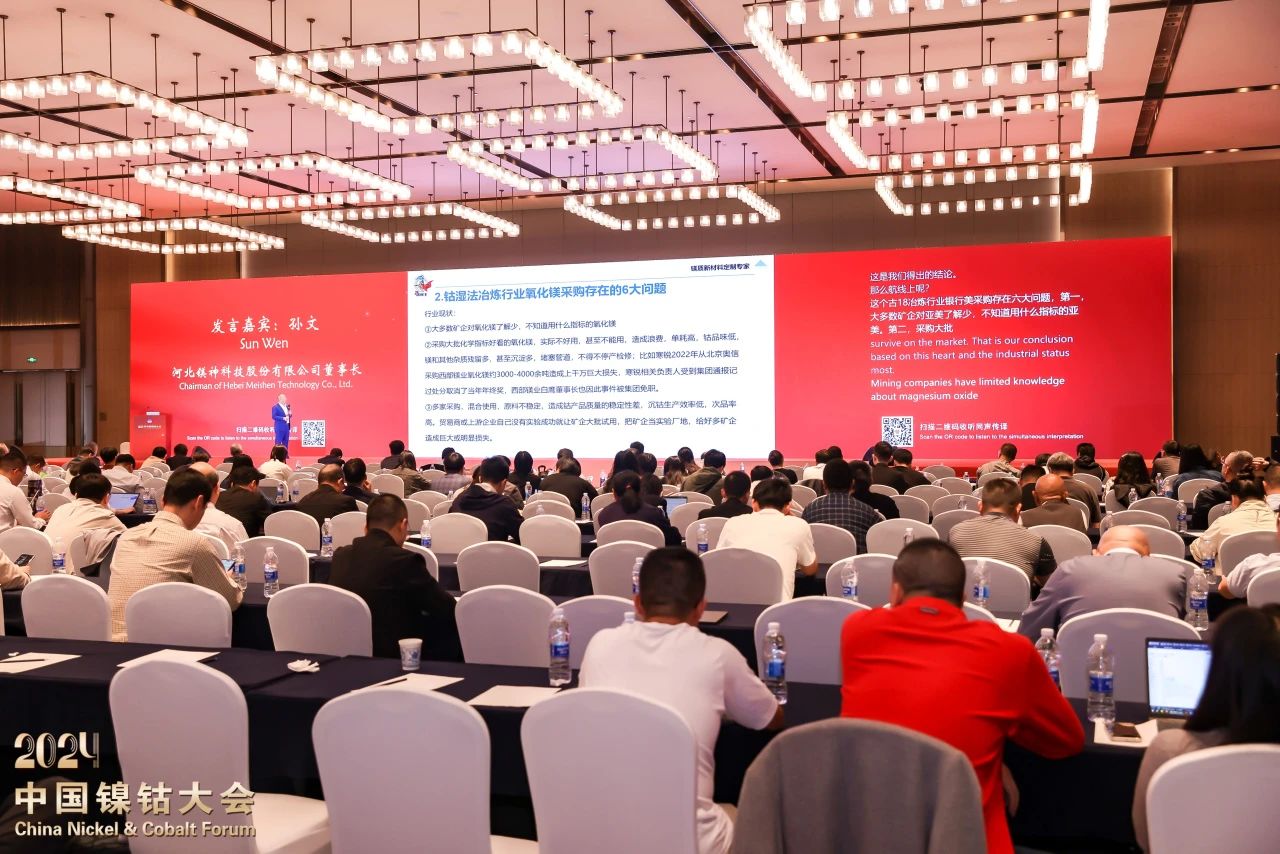 在這場聚焦“以新質(zhì)生產(chǎn)力激發(fā)鎳鈷行業(yè)高質(zhì)量發(fā)展新動能”的盛會上,河北鎂神科技股份有限公司董事長孫文先生作為嘉賓受邀出席并發(fā)表了題為《鈷置換劑用氧化鎂在非洲剛果金市場的發(fā)展現(xiàn)狀及存在問題》的主題報告,為與會者帶來了深刻洞察與前瞻思考,贏得了現(xiàn)場陣陣掌聲。