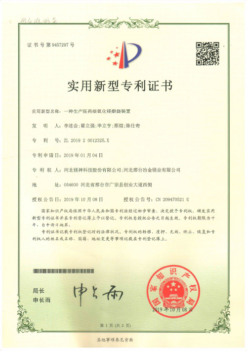 一種生產醫藥級氧化鎂煅燒